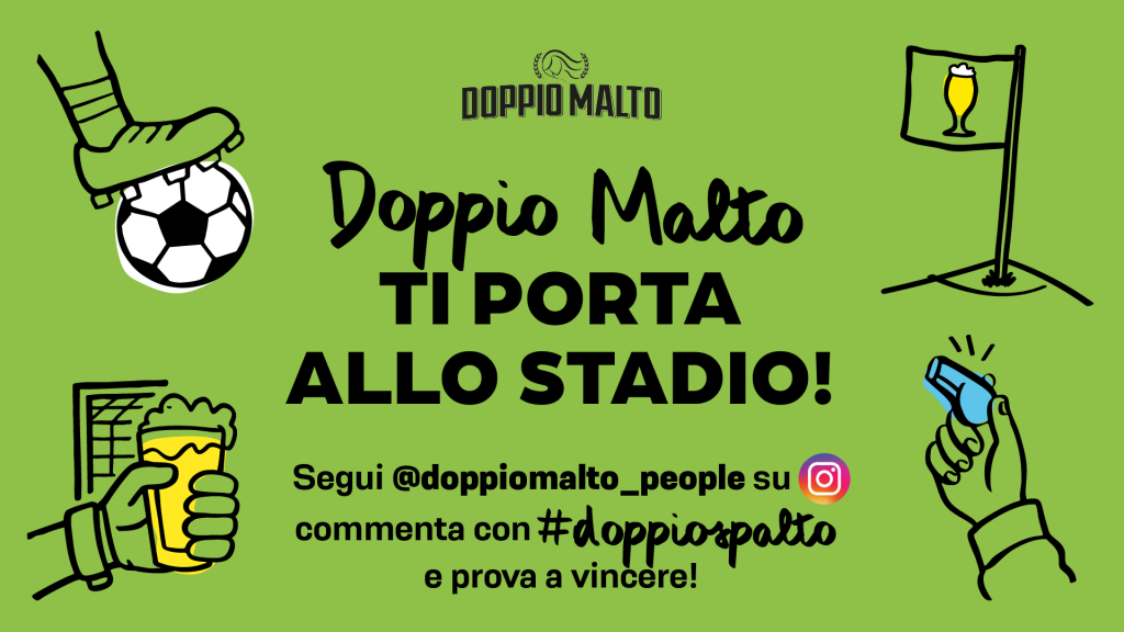 Partecipa al concorso “Doppio Malto ti porta allo stadio”! Segui @doppiomalto_people su Instagram e commenta con #doppiospalto per vincere biglietti delle partite di calcio. Scopri di più!